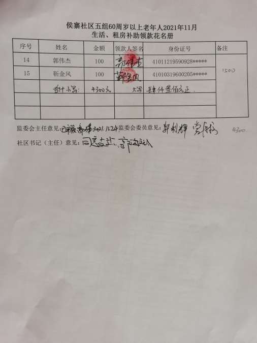 侯寨社区“孝老敬亲”2021年11月份租房补助领取公示表